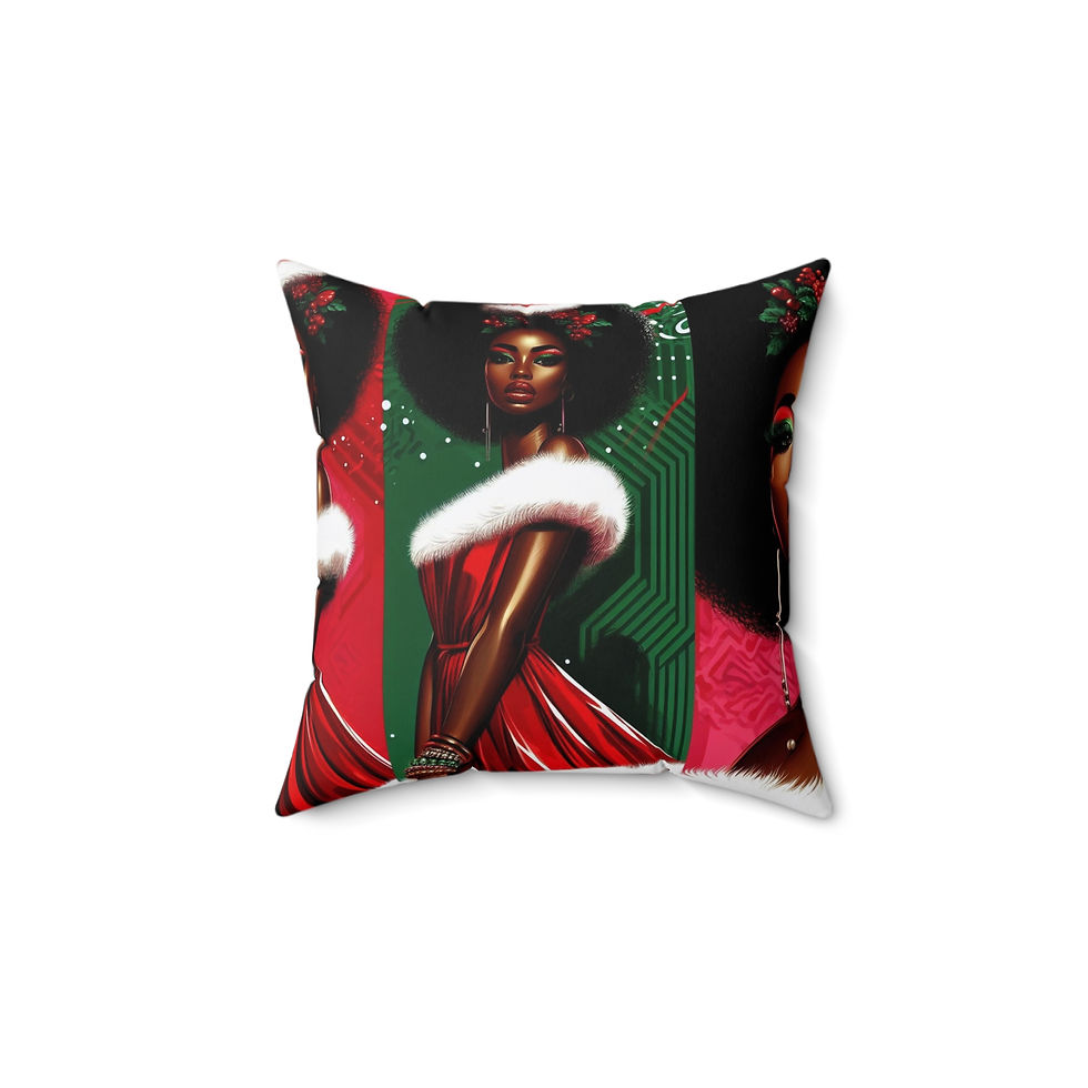 Holiday Beautiful Black Woman Spun Polyester Square Pillow